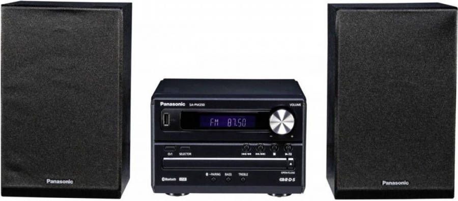 Panasonic SC-PM250EG-S: compact & compleetDe Panasonic SC-PM250EG-S is een Home audio-microsysteem. Hierdoor kan je het systeem makkelijk wegzetten in een klein hoekje of in een kast zonder dat hij in de weg staat of te veel opvalt. Ondanks het kleine formaat is de SC-PM250EG-S een zeer compleet systeem. Je kan je favoriete radiozenders beluisteren via FM, 'ouderwets' een cd aanzetten of je favoriete muziek streamen via bluetooth of af laten spelen vanaf een USB-stick.